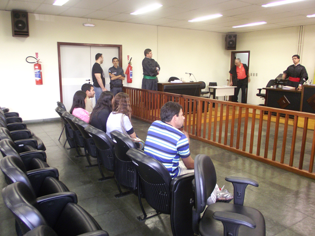 A audiência começou as 11 horas, com a escolha dos jurados, a entrada do réu e a leitura da denúncia pelo juiz titular da 1ª Vara Criminal de Resende, Hindenburg Brasil Cabral Pinto, para que todos ficassem a par do julgamento. O juiz fez as recomendações de praxe aos jurados que não podem se comunicar entre si e nem com outras pessoas, apenas com os oficiais de Justiça.