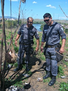 Por volta das 20h, a perícia da Polícia Civil esteve no local e retirou a ossada. A suspeita é de homicídio, o corpo que ainda não tem identificação, nem de sexo, pode ter sido pendurado e a pessoa teria morrido enforcada. A perícia não revelou se fará uma checagem no local para saber se o fogo do mato foi provocado ou acidental. O Setor de Homicídios da 89ª DP informou que só o exame de DNA vai revelar o sexo e a identidade. Alguns comentários, entre os policiais, lembraram o desaparecimento do pedreiro Amarildo.