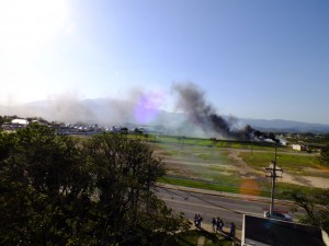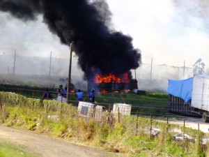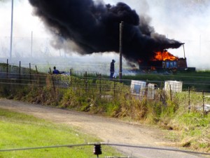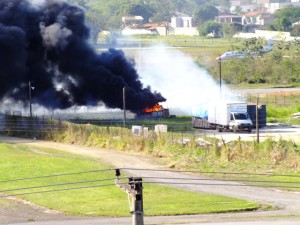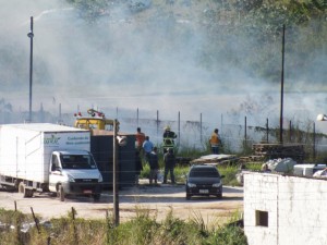 Outros catadores informaram ainda, que tudo começou, pois algumas pessoas estavam capinando o terreno ao lado, que é utilizado para manobras de aviões de brinquedo, e que colocaram fogo, quando viram que não tinham mais controle, fugiram em um carro preto.