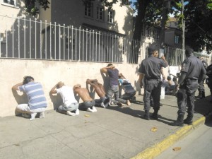 Dezesseis pessoas foram detidas pela Polícia Militar por volta das 9 horas deste domingo, dia 19, na Avenida Presidente Vargas, em frente ao Colégio Estadual Olavo Bilac, no bairro Campos Elíseos, em Resende. Segundo a PM, o grupo chegava de um baile funk, no Rio de Janeiro. Os agentes pararam a Van, que trazia o grupo de volta para casa, e pediu que todos os ocupantes descessem, momento em que percebeu que o mecânico Ricardo Júnior Camargo da Silva, 22, fez um movimento no intuito de esconder algo em baixo do banco. Em revista no interior do veículo foram encontrados uma pistola calibre 380, 15 cartuchos do mesmo calibre, quatro gramas de maconha, sete gramas de cocaína, a quantia de R$ 40 e quatro frascos transparentes, todos pertencentes a Ricardo.