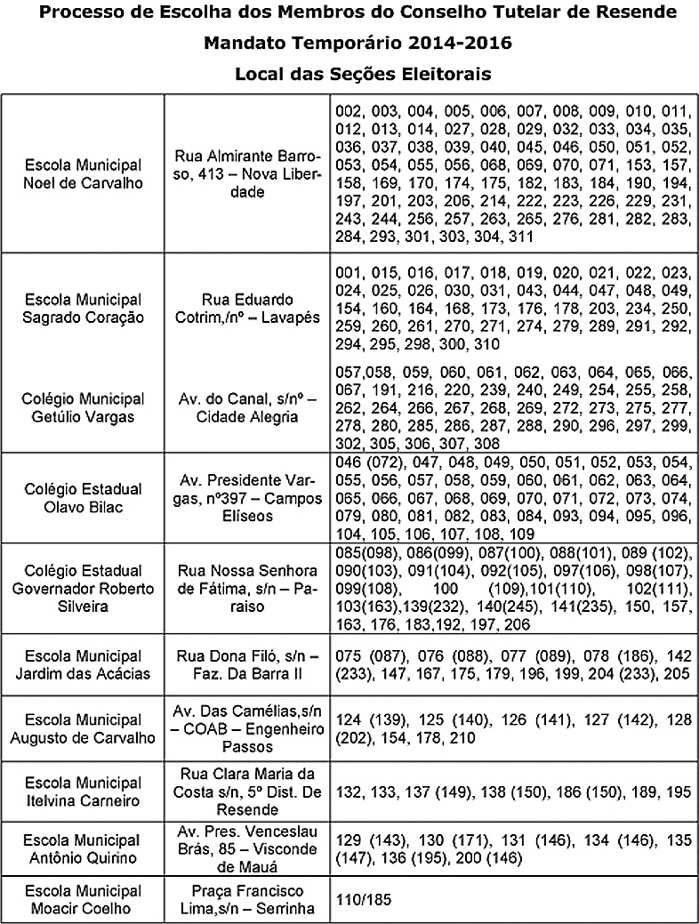 Domingo, dia 16, tem eleição em Resende. Isso mesmo. Tem eleição para o Conselho Tutelar, onde serão escolhidos os cinco novos conselheiros que ficarão na função até janeiro de 2016. Todos eleitor da cidade pode votar e deve votar, afinal se há tanta reclamação sobre a falta de políticas públicas para as crianças e adolescentes e outras tantas sobre a falta de acompanhamento ou continuidade do governo nestas políticas. Há muita comoção sempre que uma criança é estuprada, morta por pancada ou quando fica à mercê de toda e qualquer violência, até que um dia, se tornam agentes desta violência, mas comoção não resolve problema. Participação e cobrança sim.