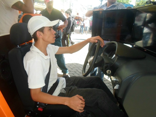 E cada um teve cinco minutos para utilizar o equipamento, que dá noções de como dirigir em diferentes condições de tempo, além de mostrar se a velocidade está acima do normal, por exemplo. Além dessa demonstração, a equipe da Sumtran também distribuiu panfletos com regras de segurança no trânsito, um adesivo e um livro com o Código de Trânsito Brasileiro.