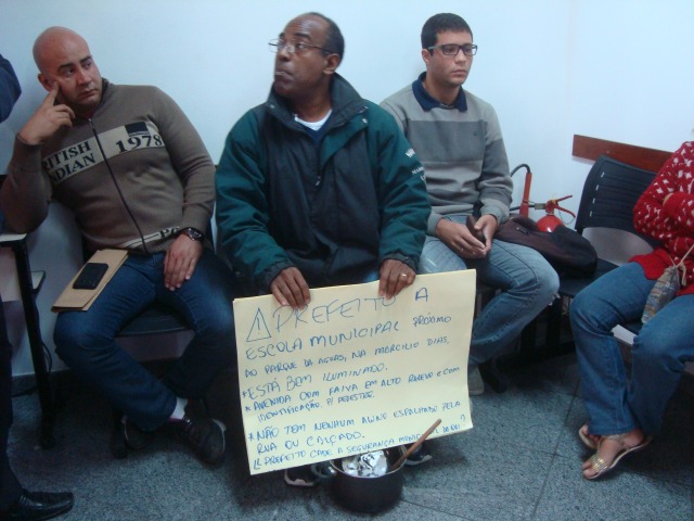 A promessa de melhoria na iluminação e instalação de câmeras de monitoramento na praça ao lado do Colégio Estadual Oliveira Botelho (CEOB) foi cumprida pela prefeitura com atraso e apenas parcialmente nesta semana. Isso porque, revoltado com a demora no trabalho, que os pais de alunos da instituição esperavam desde o dia 1º, um deles, Levi Oliveira dos Santos (na foto, com o cartaz), resolveu ir ao gabinete do prefeito cobrar a instalação dos equipamentos e levou com ele cartazes e panelas para chamar atenção.