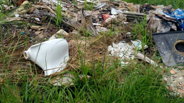 Moradores do bairro Paraíso estão inconformados com um terreno na Rua São Geraldo. Além de entulho e lixo, foi depositado no local um vaso sanitário. O mato que cresce no solo vem atraindo animais e insetos como aranhas e pernilongos . É o que diz o morador Rubens Correia, deficiente visual.