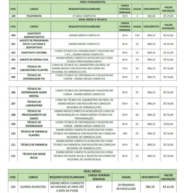 A Prefeitura de Resende abriu novo concurso público nesta semana. No dia 29 foram lançados três editais, com oportunidades para ensino fundamental, médio, técnico e superior. Confira abaixo as vagas oferecidas, com a carga horária e vencimentos oferecidos, além do valor da inscrição.
