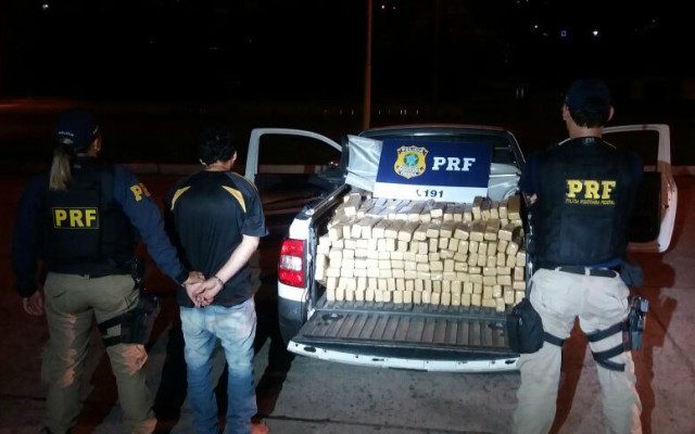 Enquanto ainda procuravam pelo motorista, os policiais rodoviários federais encontraram 515 tabletes de maconha que estavam na carroceria da caminhonete, totalizando mais de 500 kg da droga.