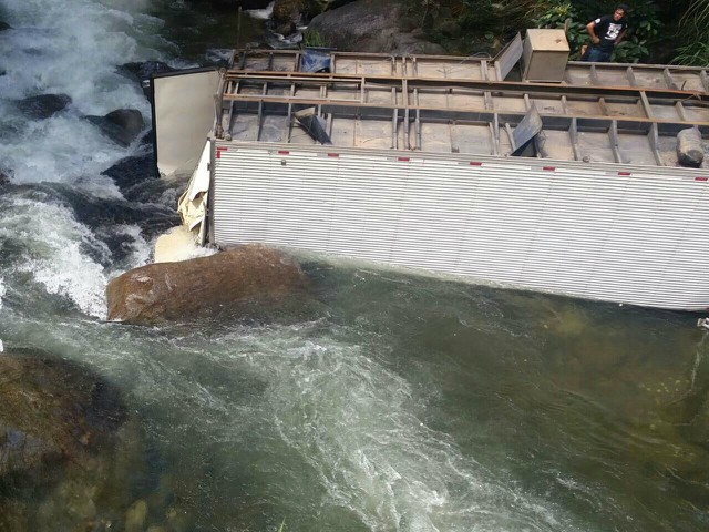 Um acidente deixou na manhã desta sexta-feira, dia 16, o motorista de uma carreta que transportava carnes ferido. O veículo que ele conduzia caiu no rio Água Branca, no distrito de Engenheiro Passos, em Resende. Segundo o Corpo de Bombeiros, o acidente aconteceu na Rodovia Rio-Caxambú, no km 15, próximo a localidade da Pedreira.