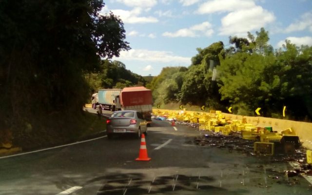 Um acidente com queda de engradados de cerveja transportados por um caminhão caiu e se espalhou sobre a pista na manhã desta terça-feira, dia 15, na descida da Serra das Araras, no km 222 da Rodovia Presidente Dutra, em Piraí, segundo informações da Polícia Rodoviária Federal (PRF).
