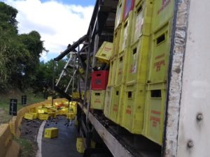 Ainda de acordo com a PRF, o veículo tentou contornar a curva da descida da pista quando as caixas com os engradados caíram. Com o acidente, o tráfego segue lento na pista expressa no sentido Rio de Janeiro, formando dois quilômetros de congestionamentos entre os kms 222 e 224.