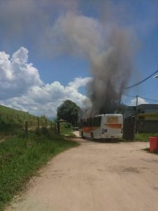 Um ônibus da Viação São Miguel, que realizava o trajeto entre Jardim do Sol e Casa da Lua, em Resende, ficou em chamas na tarde desta sexta-feira, dia 14, na região da Chácara do Januário. Segundo informações do Corpo de Bombeiros, que foi acionados por volta das 13h, o motorista que conduzia o veículo relatou que duas pessoas estavam no ônibus quando uma delas sentiu cheiro de queimado que vinha do motor.