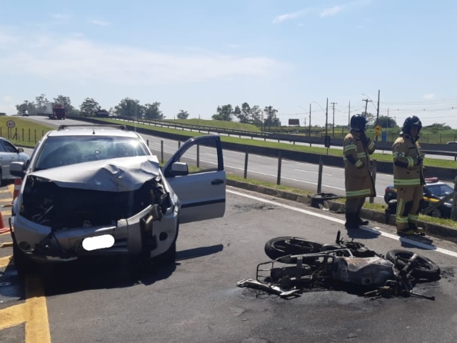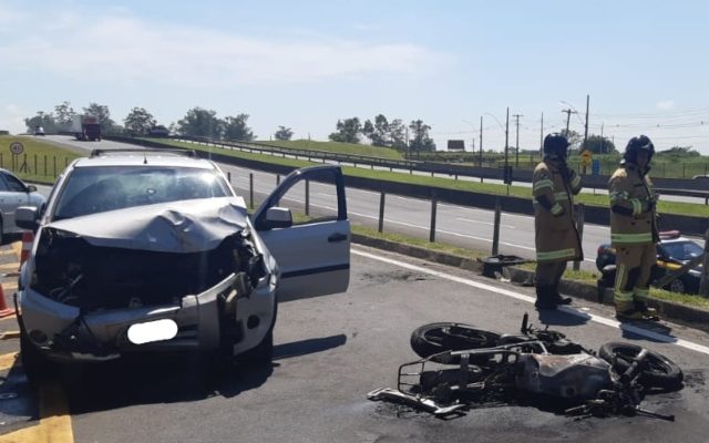 Segundo informações da Polícia Rodoviária Federal (PRF), o EcoSport teria entrado pela contramão na pista auxiliar, provocando a batida com a moto, que seguia no sentido contrário. Na colisão, a moto se incendiou. O condutor e proprietário da moto, de 52 anos, ficou gravemente ferido e foi socorrido pelo Samu, mas morreu a caminho do hospital.