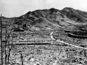 Às 8h15 de 6 de agosto, foi lançada em Hiroshima, cidade japonesa de 256 mil habitantes a bomba Little Boy, com 72 quilos de urânio 235, a mais de 10 mil metros de altura. Tudo em um raio de dois quilômetros foi destruído pela explosão equivalente a 13 mil toneladas de TNT. Morreram imediatamente 70 mil pessoas. Uma enorme nuvem em forma de cogumelo de poeira cinza, marrom e negra subiu pelo céu. Hiroshima ficou às escuras, o sol tinha desaparecido, e uma chuva negra radiativa. Até o fim do ano de 1945, outras 60 mil morreram vítimas das sequelas da explosão nuclear.
