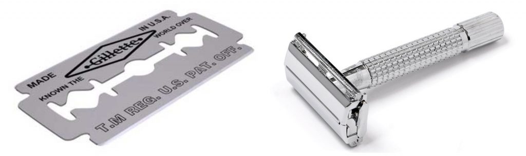 As lâminas de barbear foram desenvolvidas em meados do século 19, mas ainda usavam lâminas forjadas. Na década de 1870, os irmãos Kampfe introduziram um tipo de navalha nesse sentido, e Gillette melhorou esses designs anteriores de navalhas de barbear introduzindo a lâmina de barbear estampada de alta margem de lucro feita de folha de aço carbono.