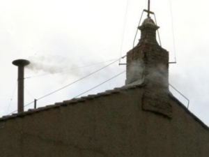 Após serem contados, os boletins de votos são cosidos (costurados) com uma agulha e posteriormente queimados na salamandra instalada na Capela Sistina, a partir da qual sai o fumo (negro em caso de votação inconclusiva e branco em caso de eleição) visível na Praça de São Pedro.