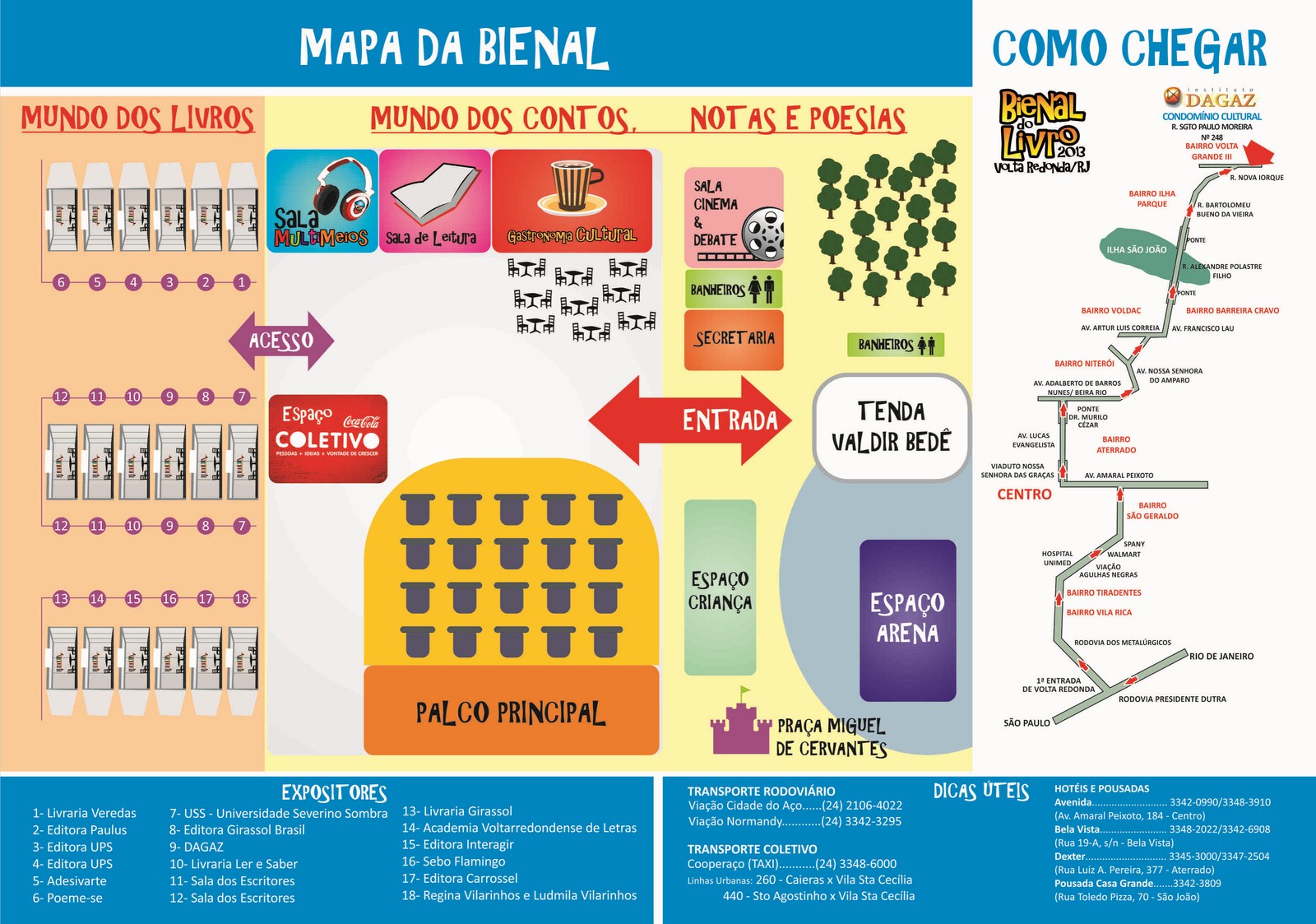 Pela primeira vez, Volta Redonda é sede de uma Bienal de Livros. O evento, que é realizado pelo Instituto Dagaz com apoio a Academia Voltarredondense de Letras e a Associação de Moradores dos Bairros Volta Grande I e III, incia nesta sexta-feira, dia 26, com horário de visitação das 14 às 23h, e se estende até sábado, dia 28, nos horários de 9h às 23h, na sede da Associação de Moradores dos bairros Volta Grande I e III Condomínio Cultural – Instituto Dagaz, no bairro Santo Agostinho.