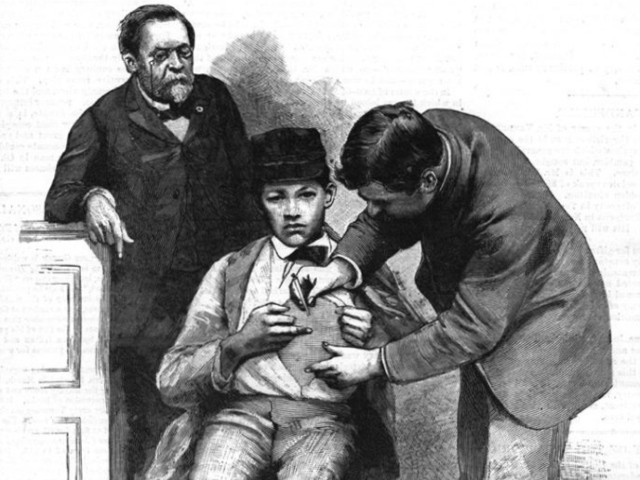 No dia 6 de julho de 1885, foi imunizado com sucesso o primeiro ser humano com a vacina antirrábica, utilizada contra a raiva, uma doença sem cura e que costuma ser letal em quase 100% dos casos. Na ocasião, Joseph Meister, um menino de apenas nove anos, fora mordido dois dias antes por um cão que tinha a doença. Filho do padeiro Joseph Meister Anthony, como de costume foi a uma cervejaria na vizinha vila de Maisonsgoutte, distante alguns quilômetros de onde vivia, a fim de comprar fermento.