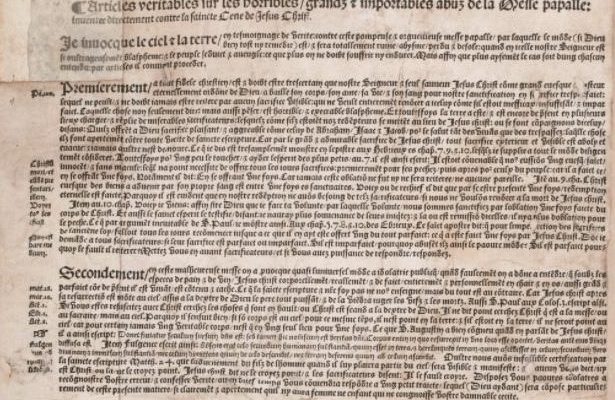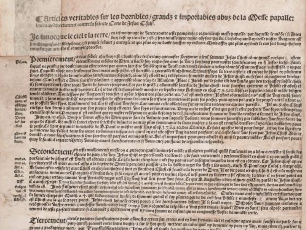 Em outubro de 1534 vários cartazes foram colocados em locais públicos em toda Paris e outras quatro cidades (Blois, Rouen, Turs e Orléans) com mensagens anticatólicas. O Affaire des Placards (em francês) pôs fim às políticas conciliatórias do rei Francisco I, que anteriormente tentou impedir que as medidas extremas do Parlamento francês se concretizassem.